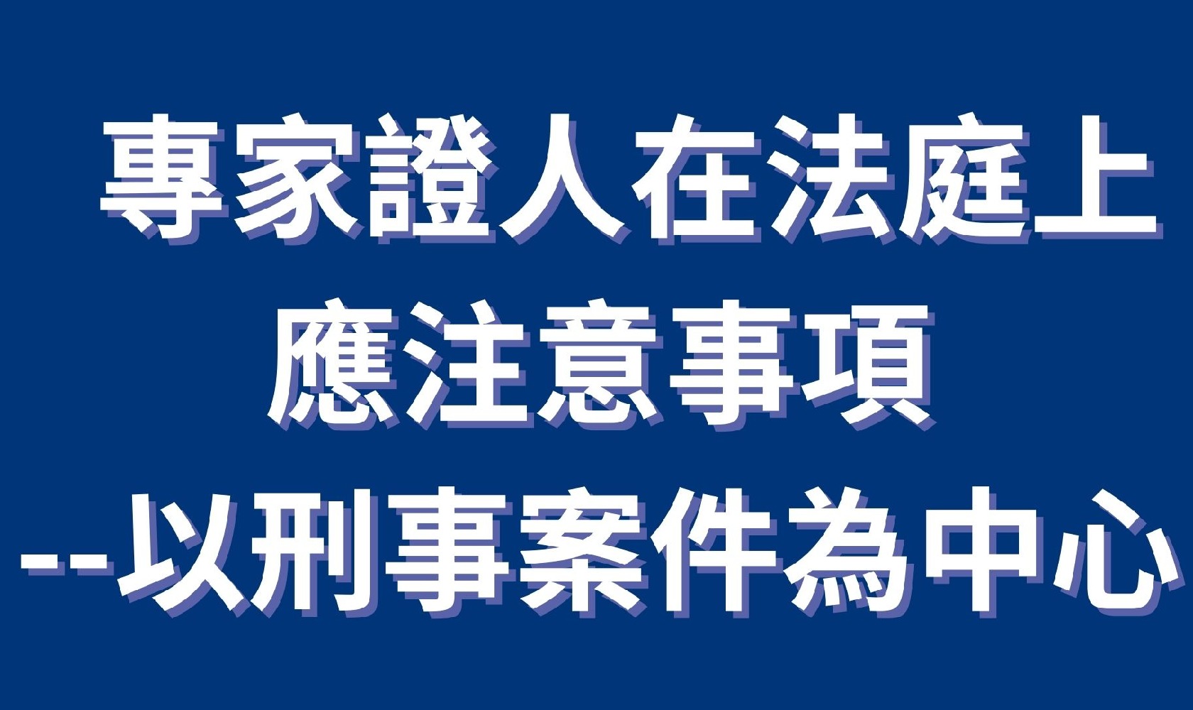 【115持續進修課程】0330專家證人在法庭上應注意事項--以刑事案件為中心